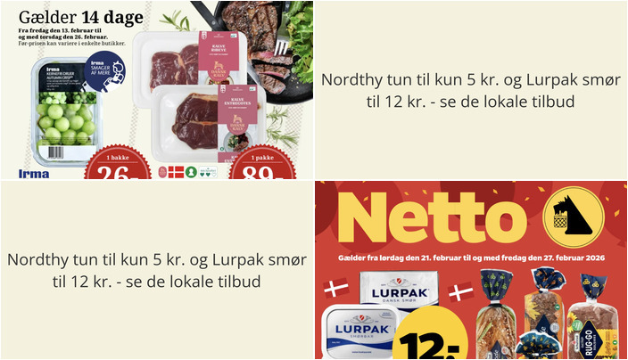 Netto tilbyder Lurpak smør eller smørbar til en skarp pris på kun 12 kr. for 200 g. Tilbuddet gælder fra lørdag den 21. februar til fredag den 27. februar, med en begrænsning på maksimalt 3 stk. pr. variant pr. kunde pr. dag.